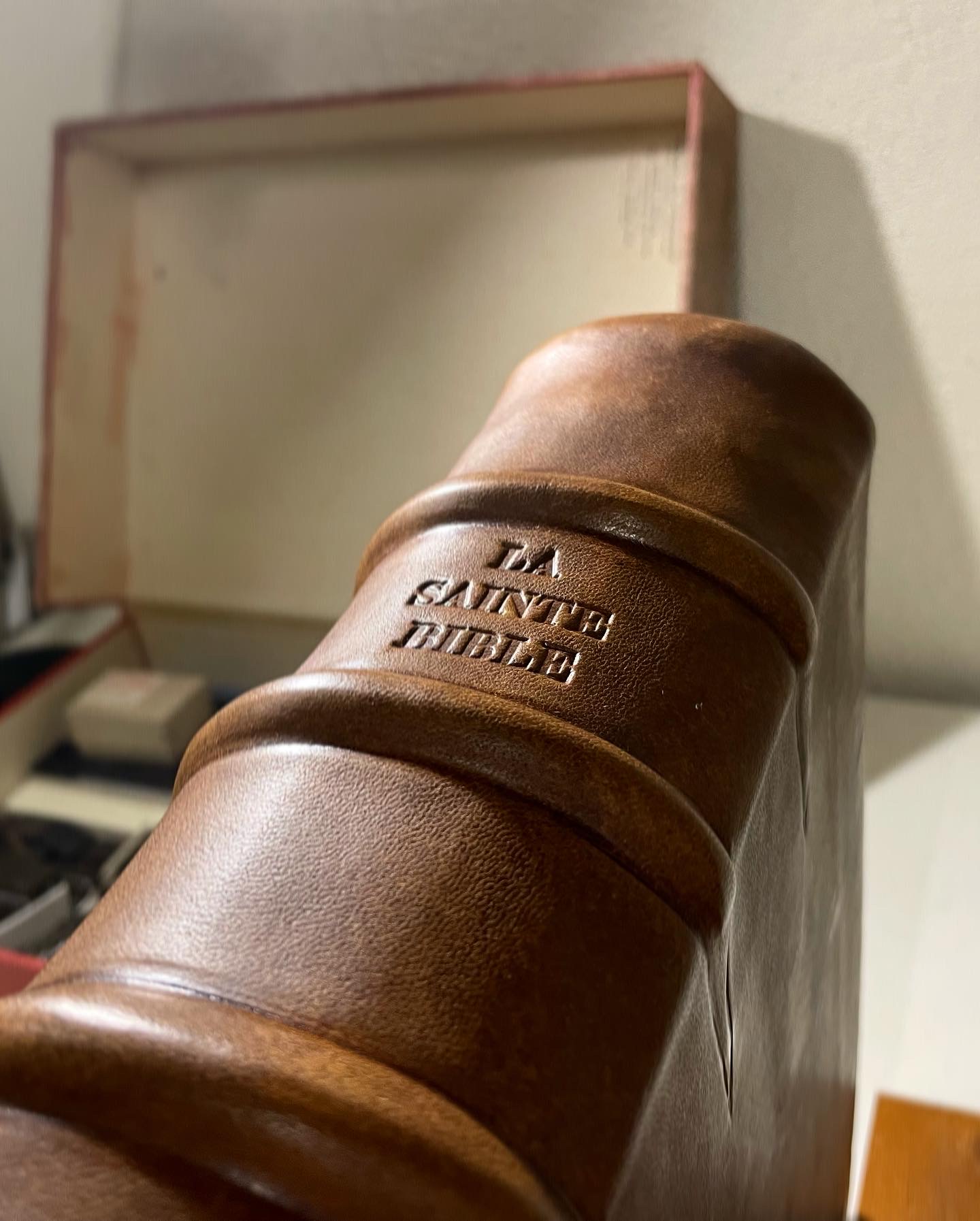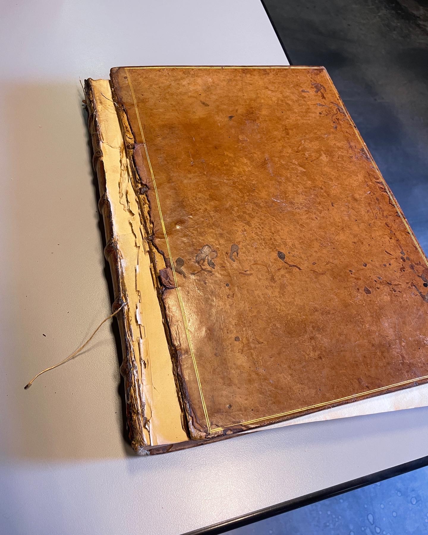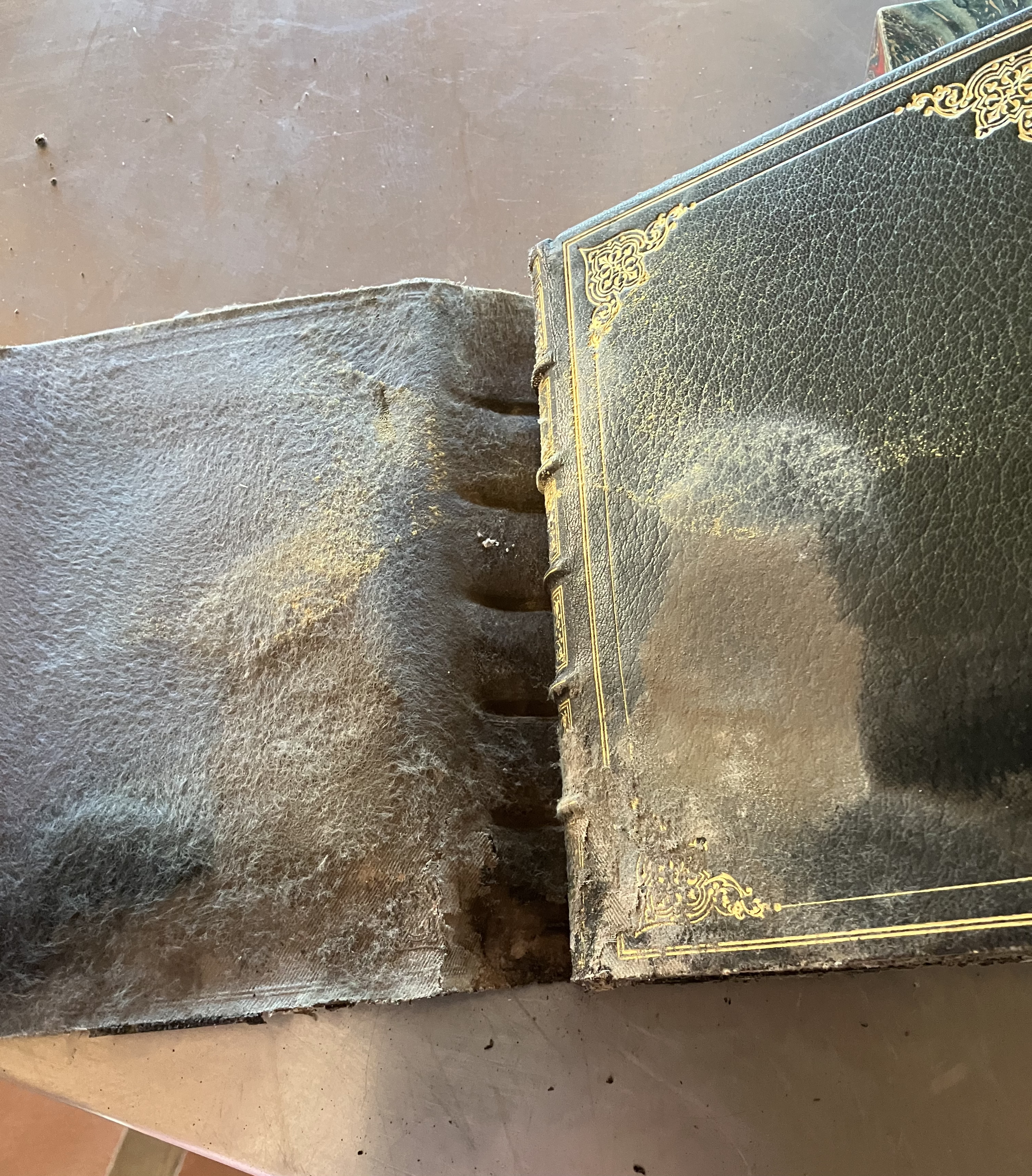 Restauration d’un livre en cuir et de son étui après un dégât des eaux (particulier)
