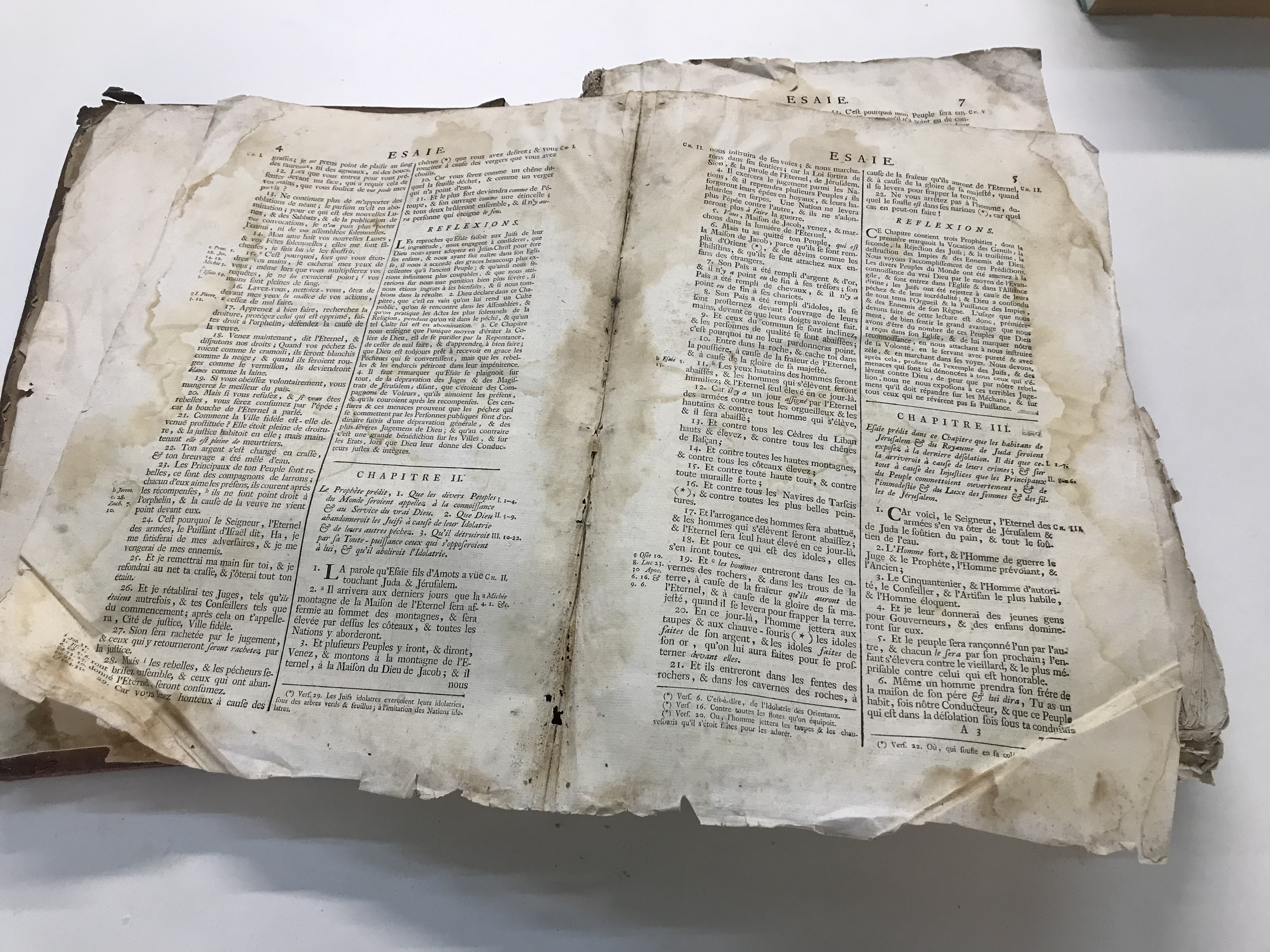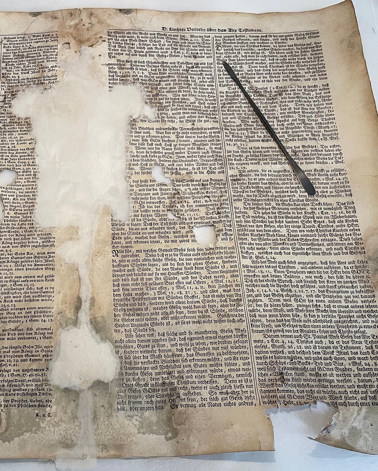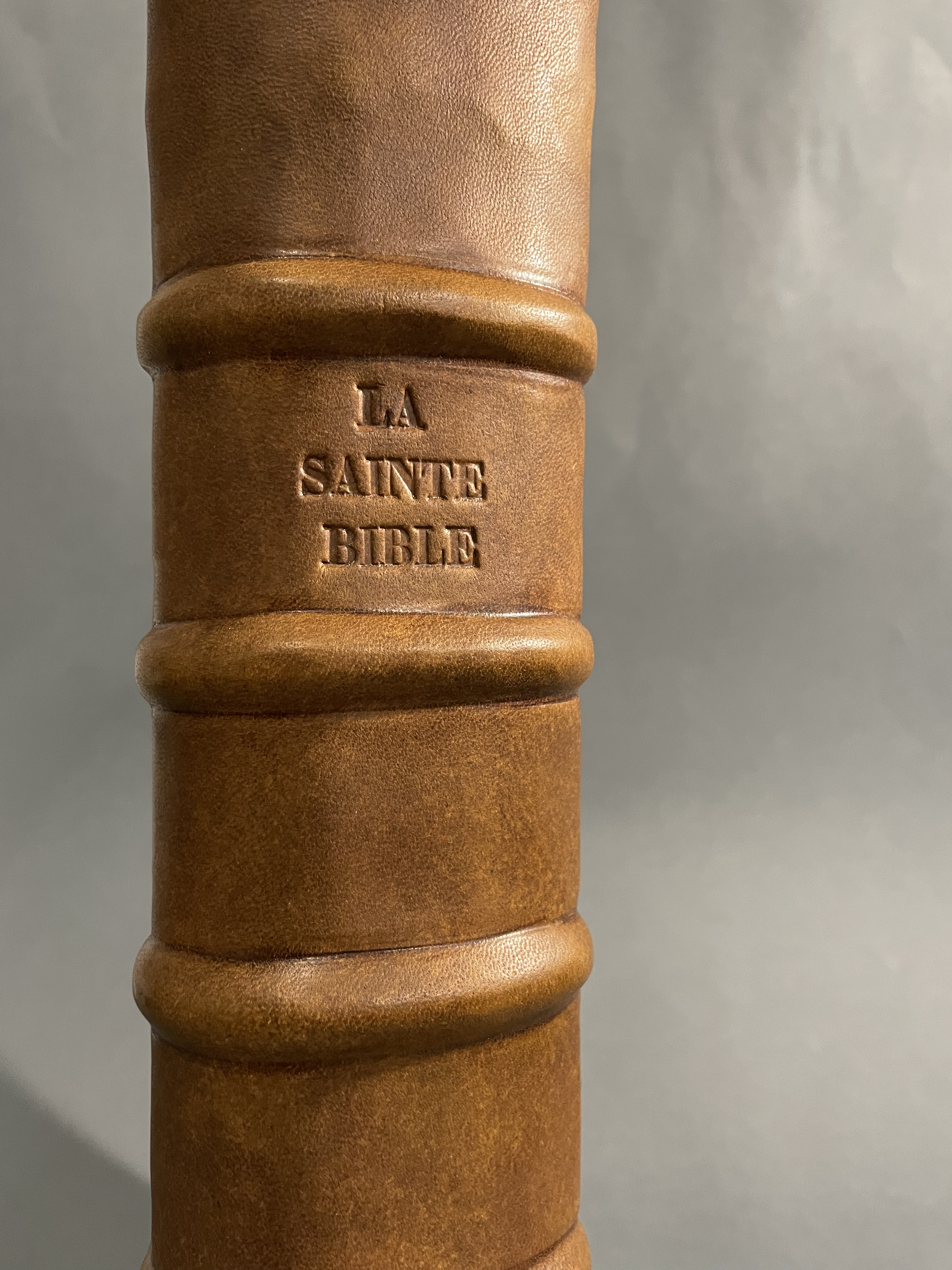 Restauration papier d’une bible de Luther (en allemand) de 1729, reliure refaite à l’identique.