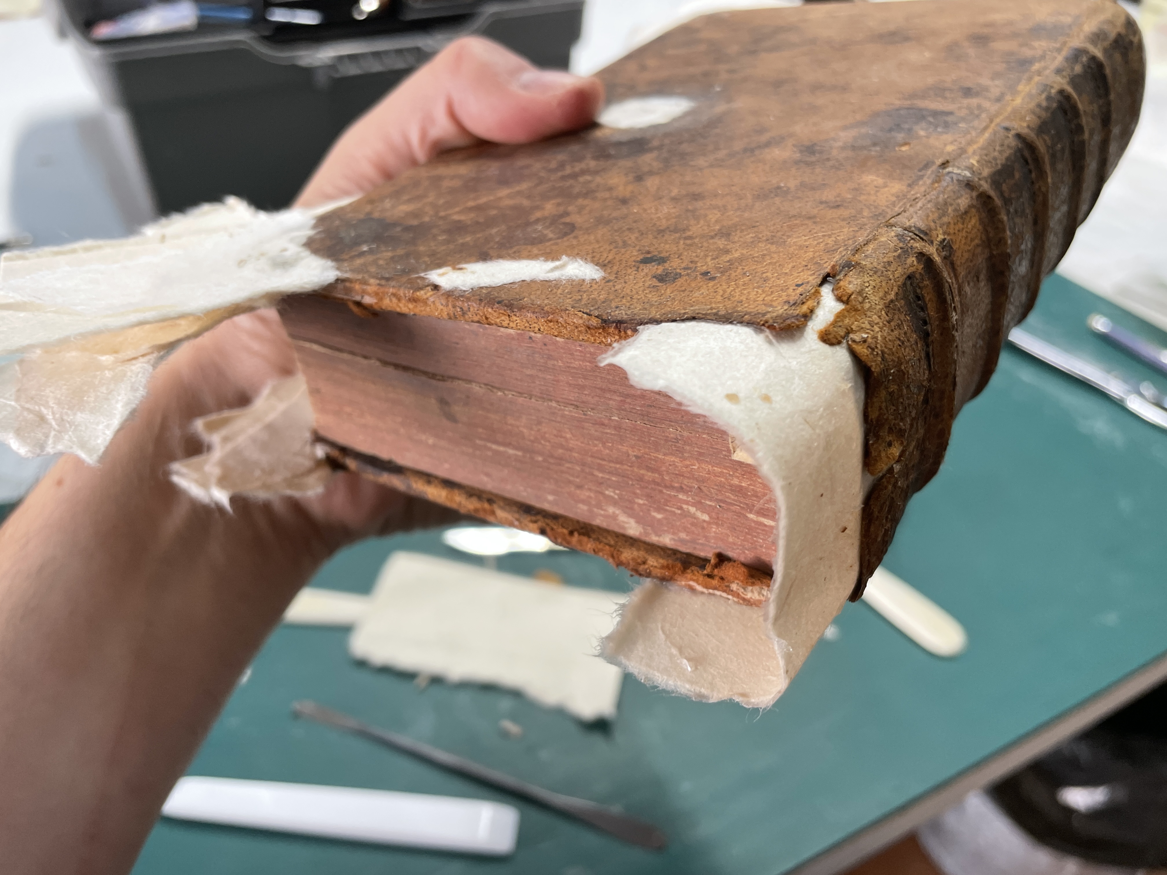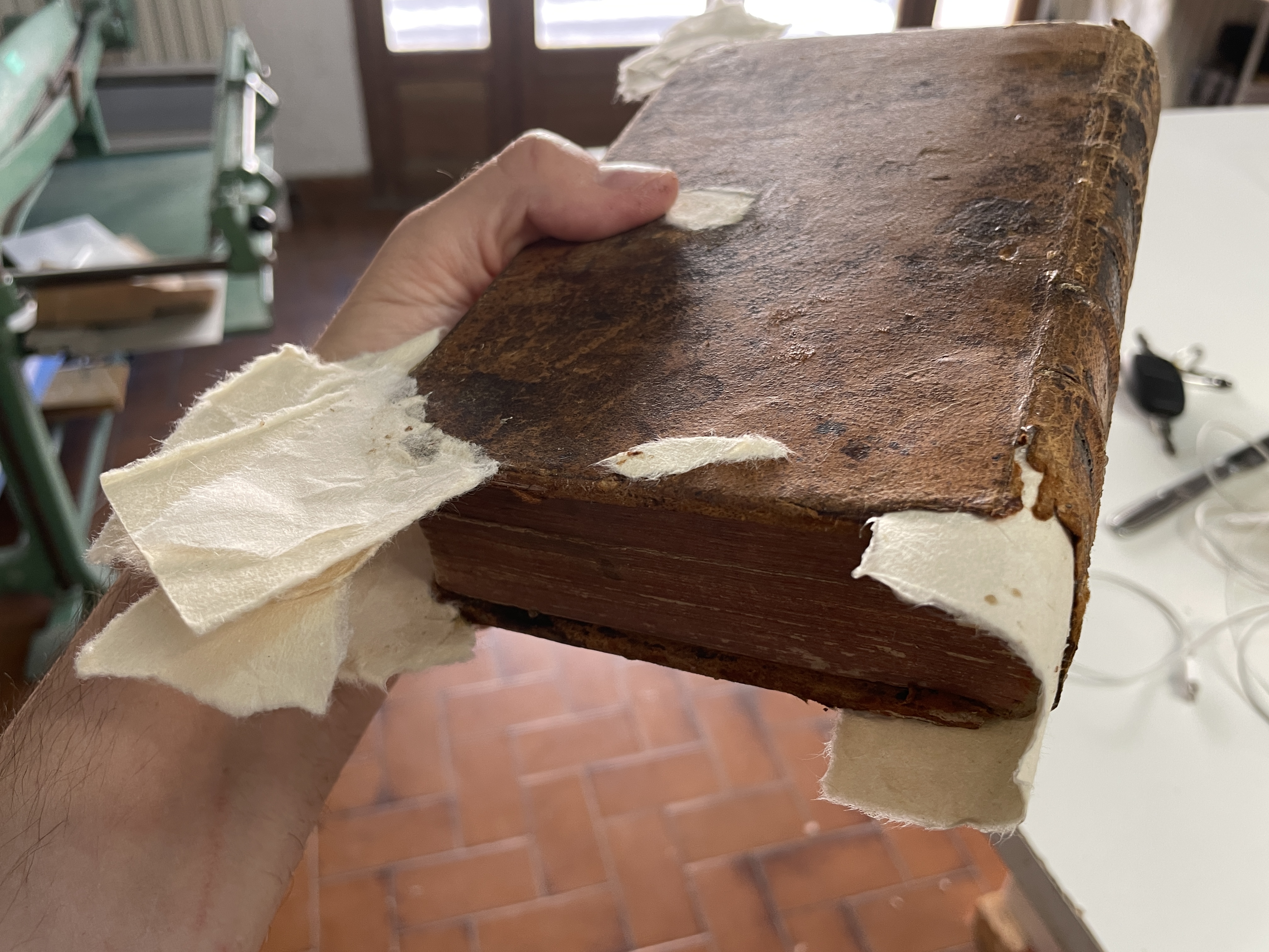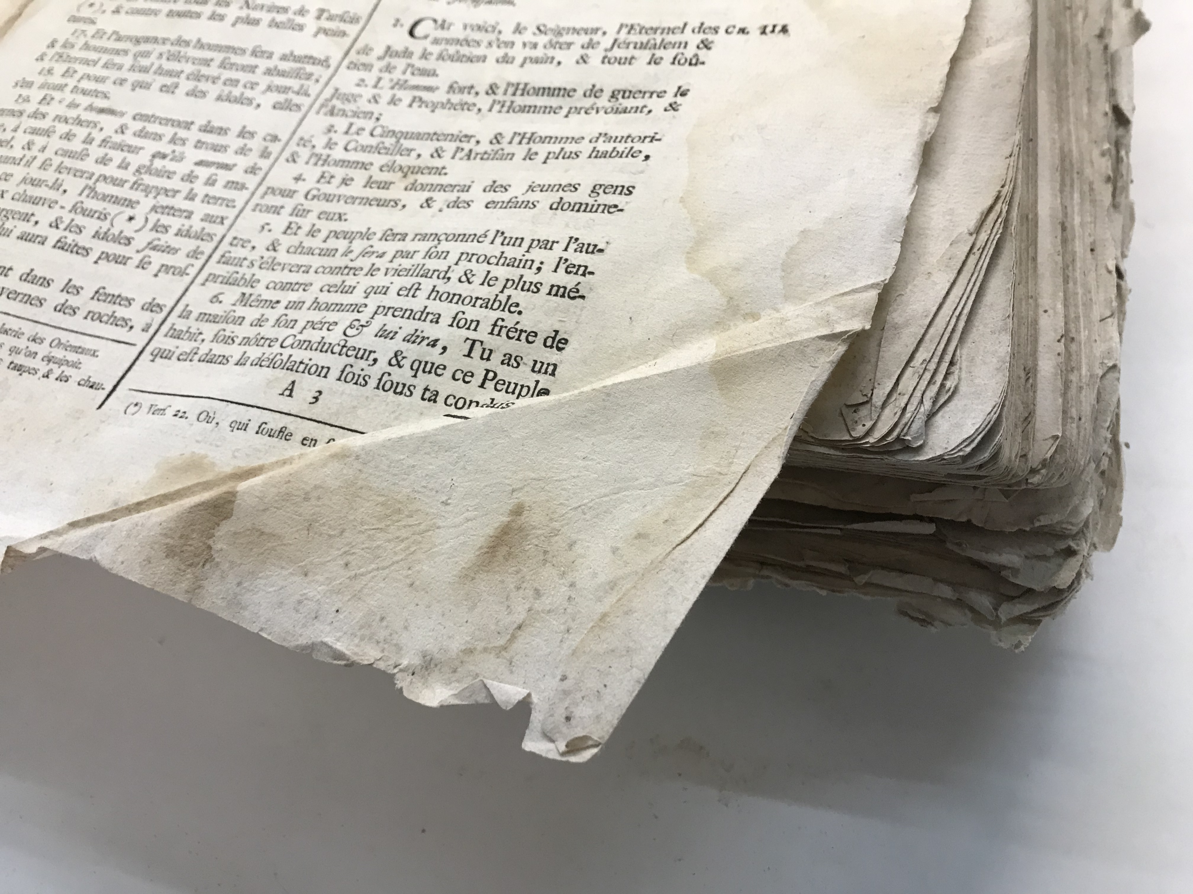 Restauration papier d’une bible de Luther (en allemand) de 1729, reliure refaite à l’identique.