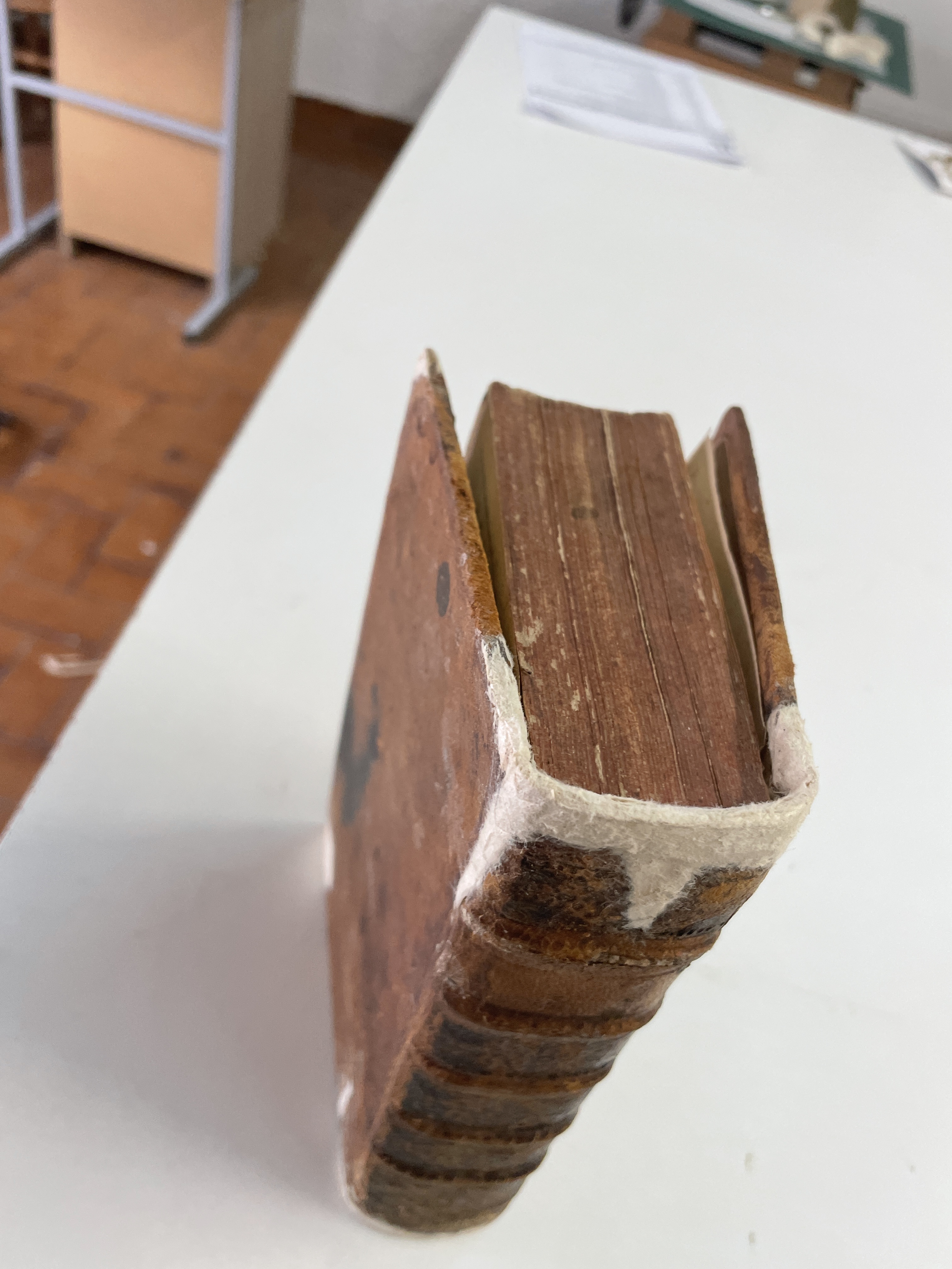 Remplacement des manques de cuir et ré incrustation d’un dos
