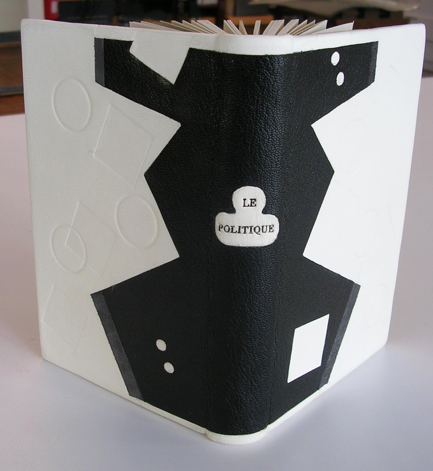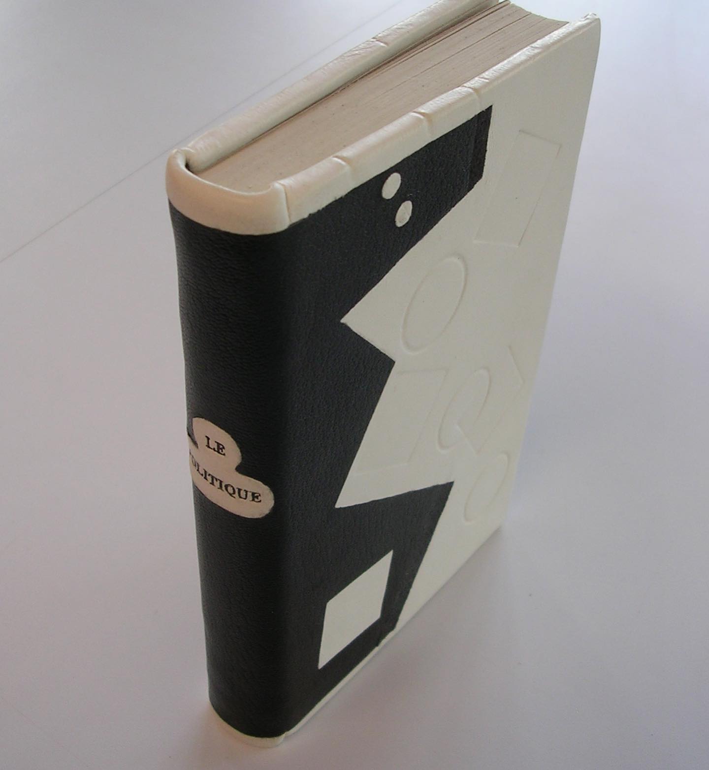 « Le Politique » de Louis Barthou, 1923. Reliure plein cuir mosaïque et empreinte à froid réalisée dans le cadre d’une commande de reliure à décors. Exemplaire dédicacé par l’auteur à Édouard Herriot, conservé aux Archives Municipales de Lyon sous la cote 5C23.