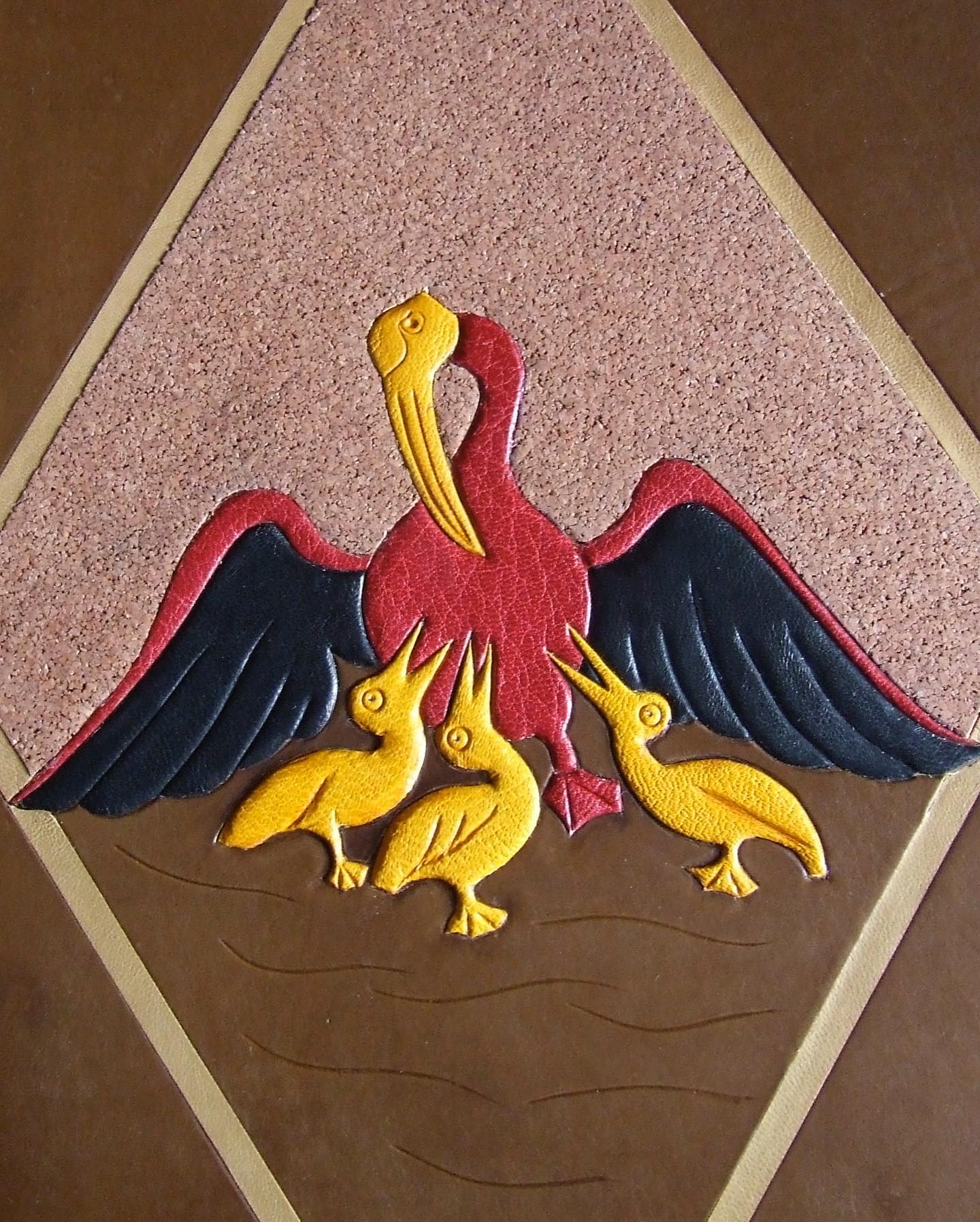 Commande d’une mosaïque de cuir / liège pour le « Pélican », sur Missel. Collection privée.